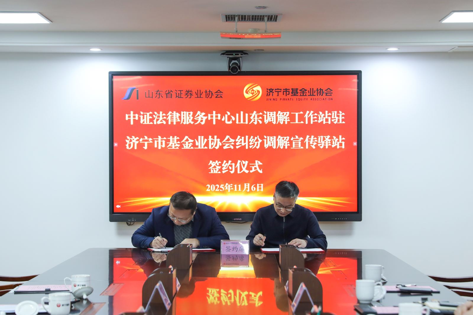 隨后,鄭家文與濟(jì)寧市股權(quán)投資基金業(yè)協(xié)會常務(wù)副會長、秘書長宋斌亭共同簽署合作協(xié)議。孫素美與趙勁松共同為“中證法律服務(wù)中心山東調(diào)解工作站駐濟(jì)寧市基金業(yè)協(xié)會糾紛調(diào)解宣傳驛站”揭牌。